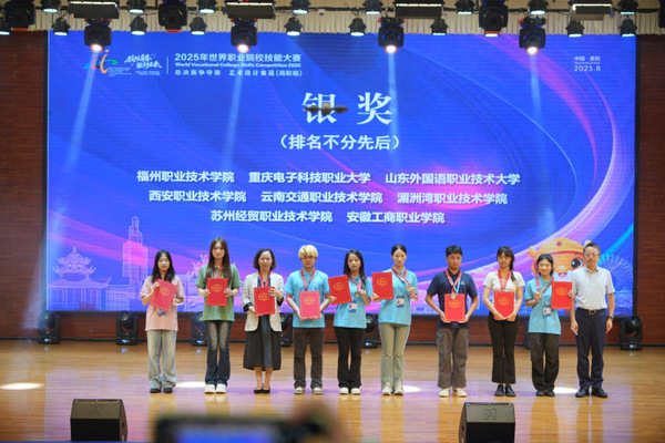 近日,2025年世界职业院校技能大赛总决赛争夺赛艺术设计赛道(高职组)在贵州电子商务职业技术学院圆满落幕。我校文化旅游学院学子倪津津、谢春鑫、陈瑶、翁晨熠(指导教师:佘金勇、何方)凭借扎实的专业功底、卓越的创新能力与默契的团队协作,荣获大赛银奖。