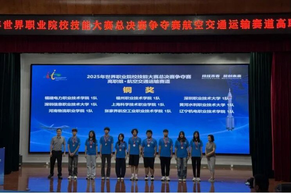 近日,2025年世界职业院校技能大赛总决赛争夺赛航空交通运输赛道(高职组)落下帷幕。我校智能工程学院参赛团队陈林凯、游昌平、周惠敏、任依依(指导老师:李枭、邵美芳),经过激烈角逐,最终荣获大赛铜奖。